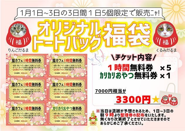 ★【福袋】かわいいトートでお得に猫カフェ♪